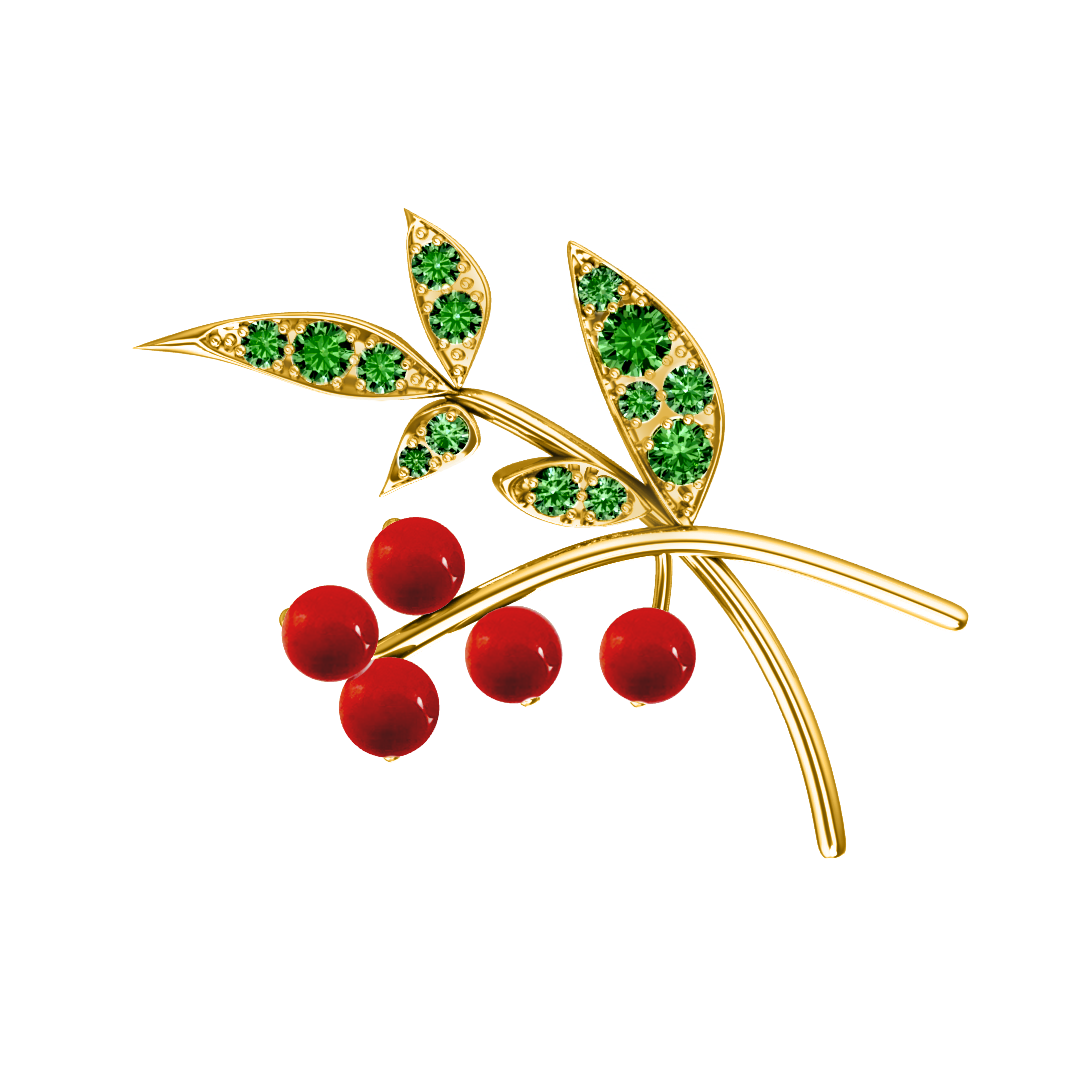 素材:18K ゴールド, グリーンガーネット 14石, コーラル 5石
