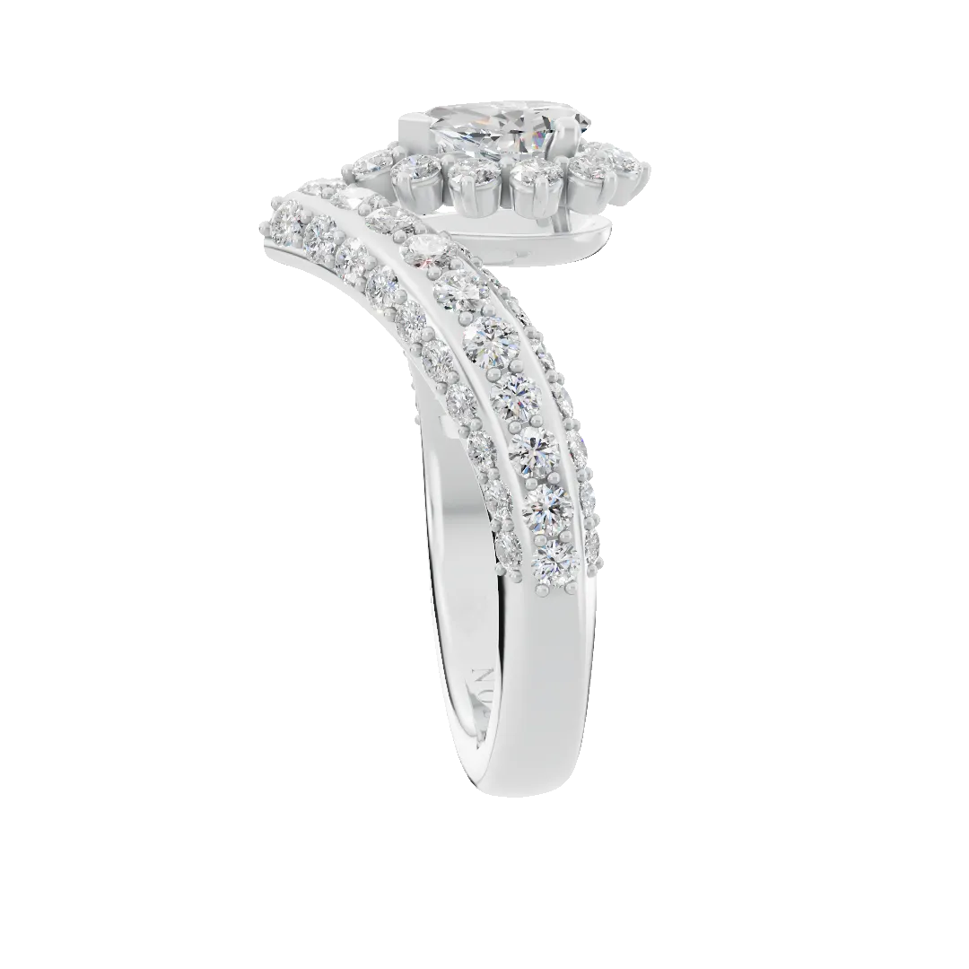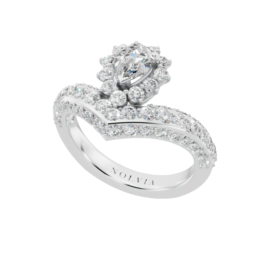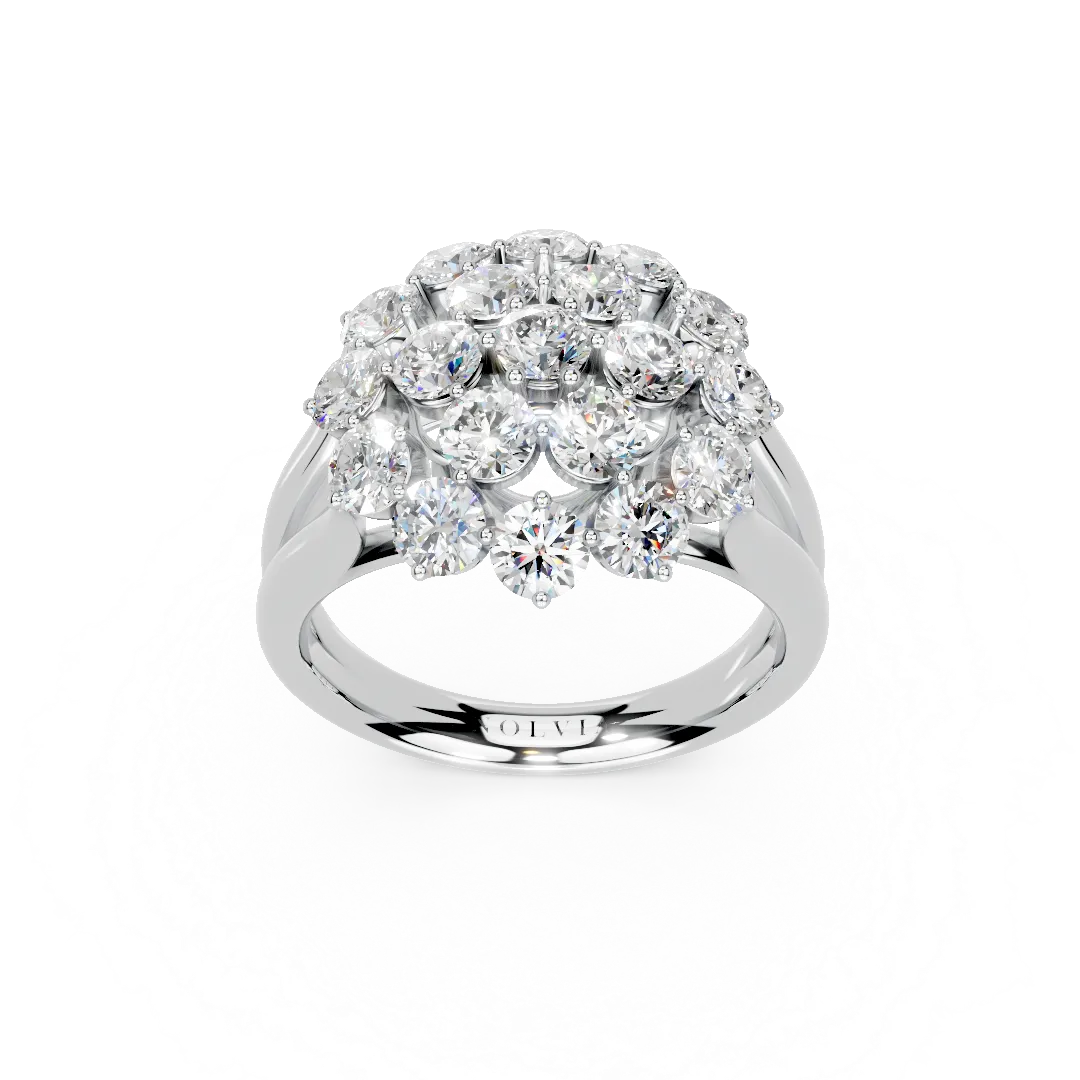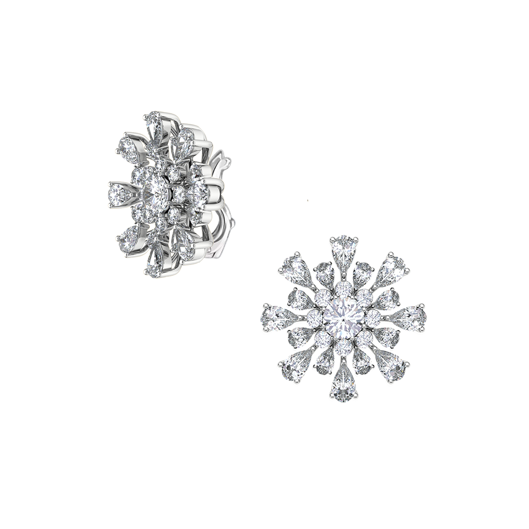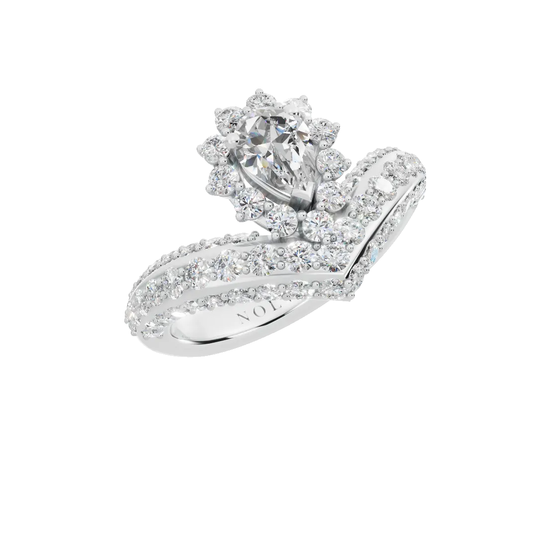 柔らかな曲線が描くシルエットと、存在感を放つ19石の光の粒が織りなすシンチレーションが、美しいデザインです。