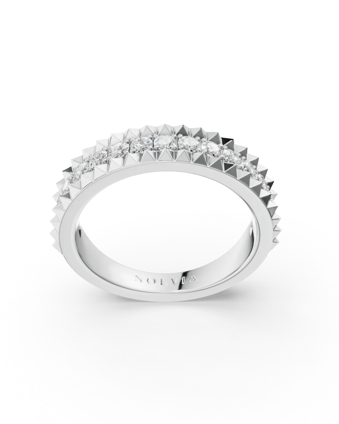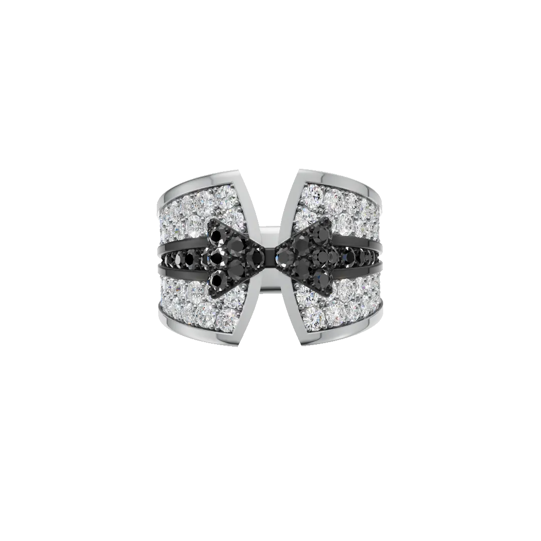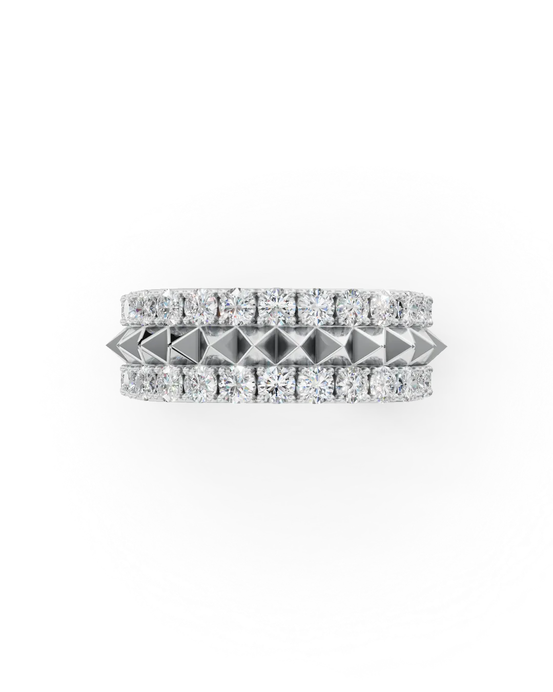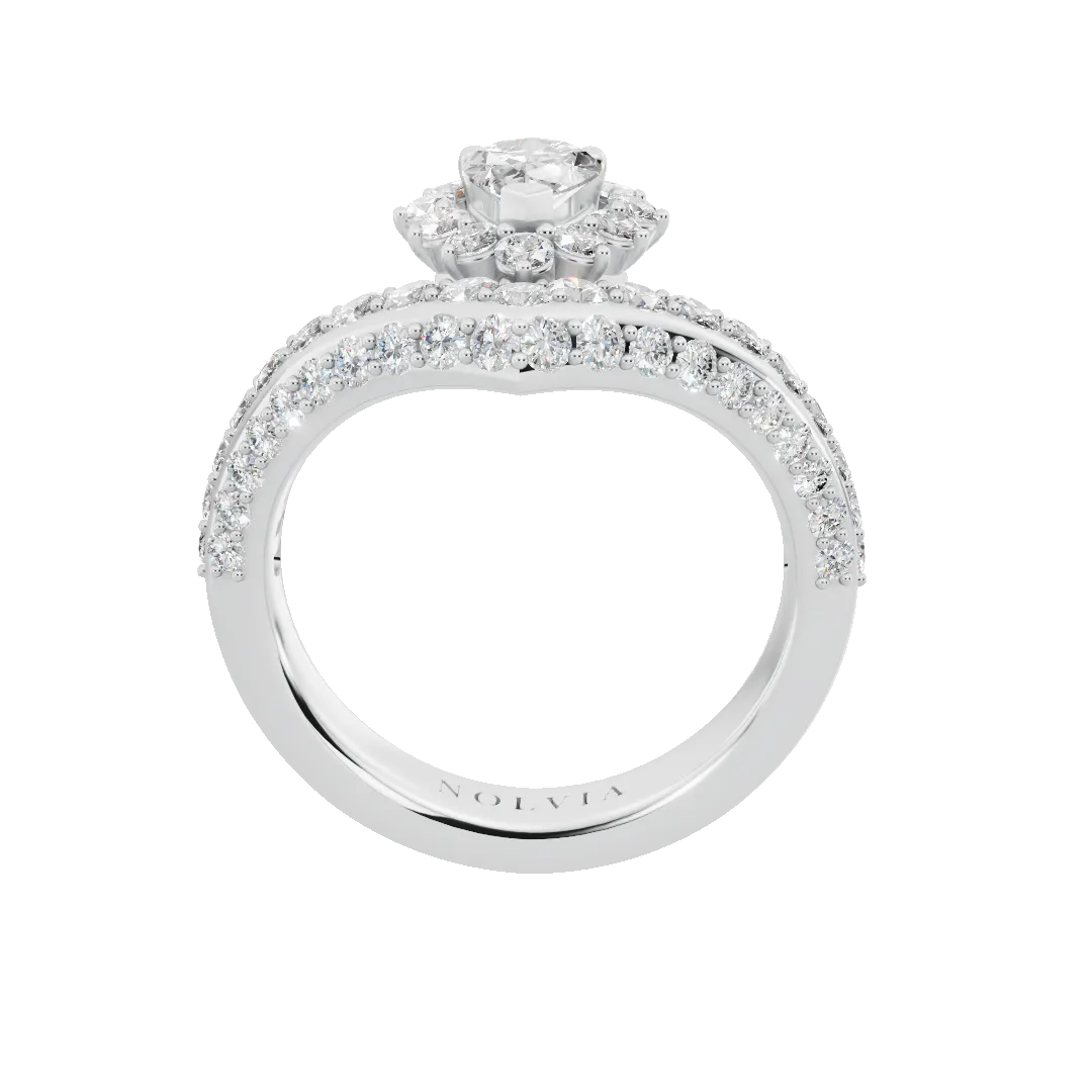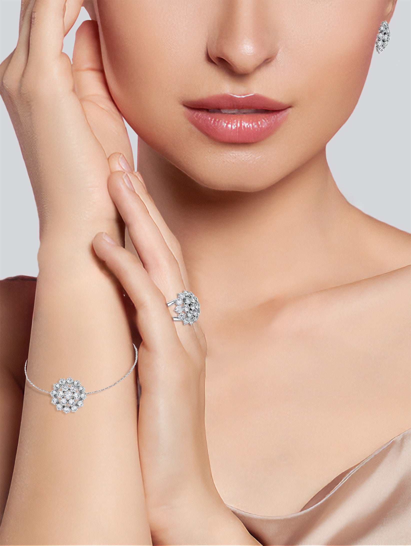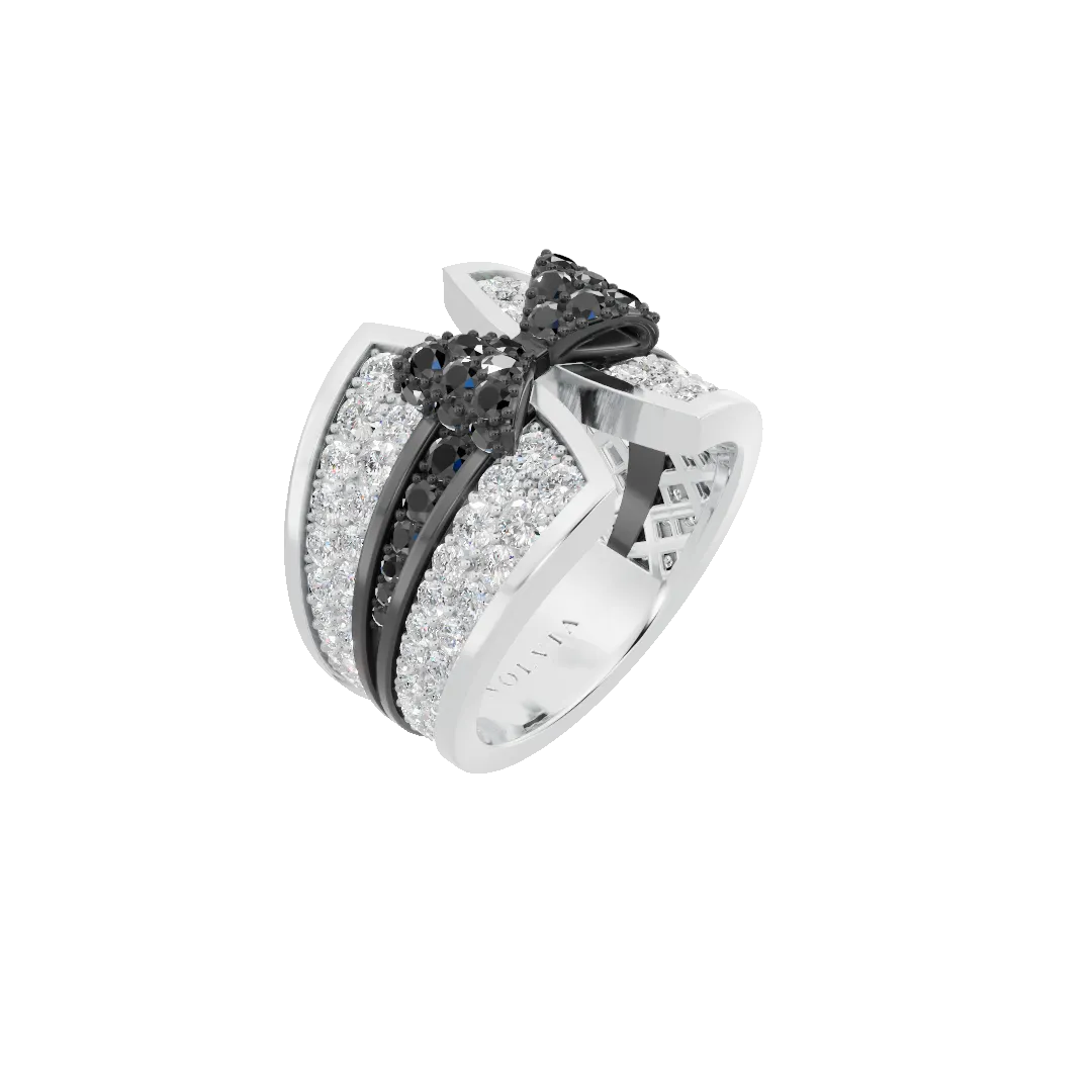柔らかな曲線が描くシルエットと、存在感を放つ19石の光の粒が織りなすシンチレーションが、美しいデザインです。