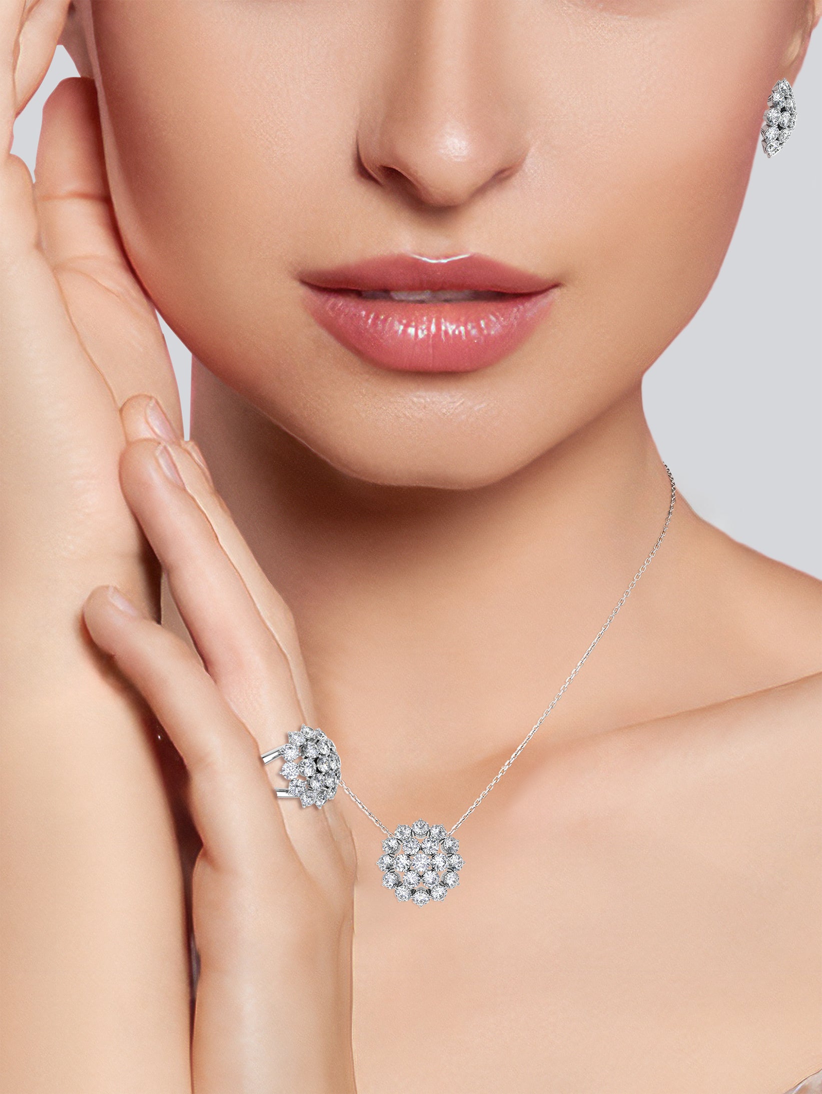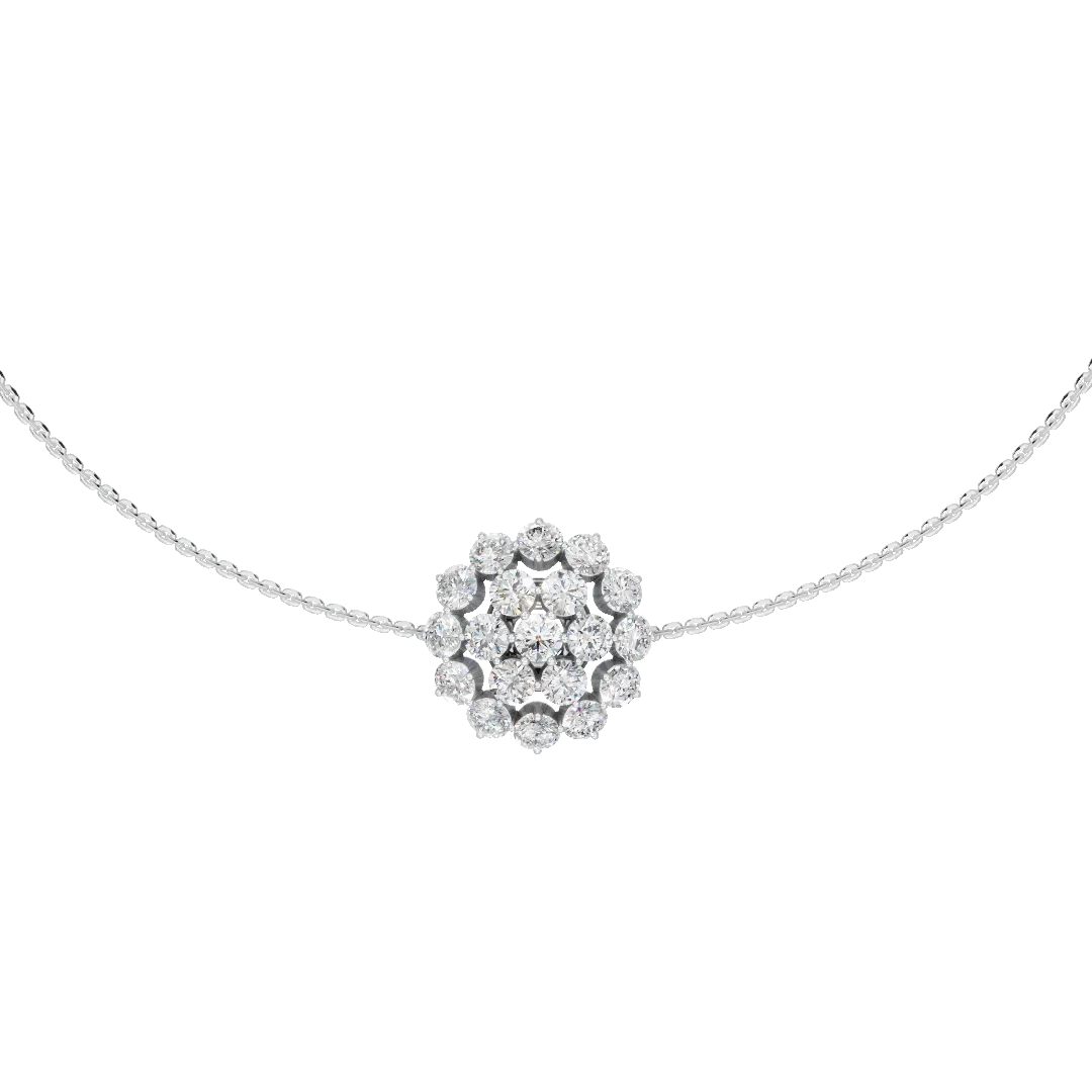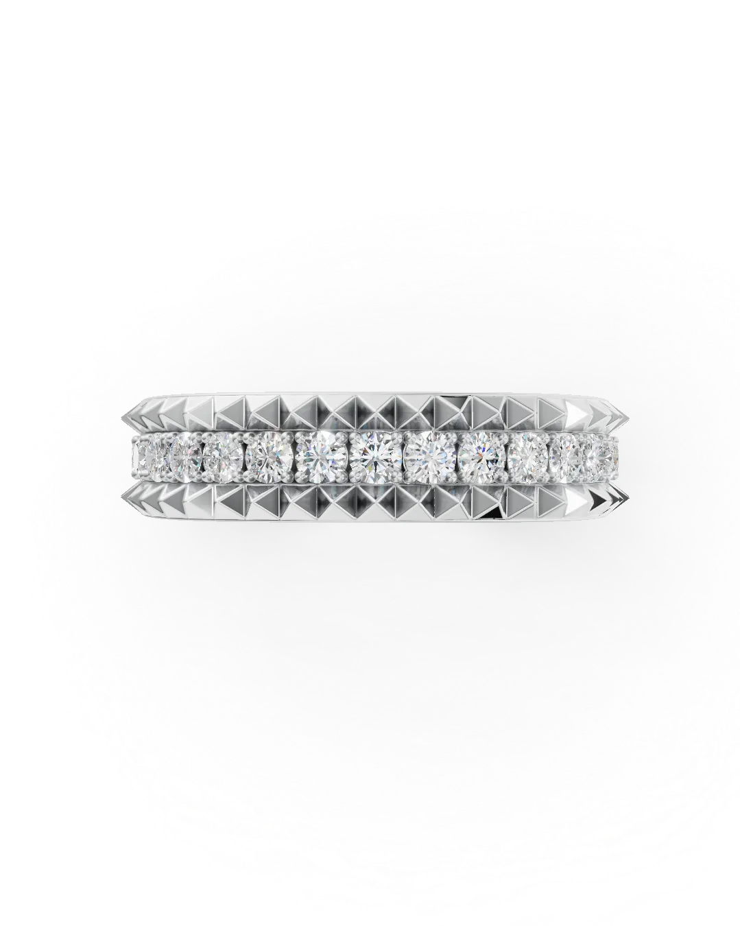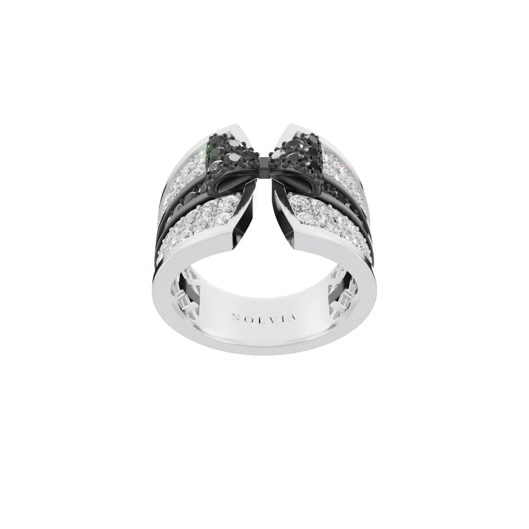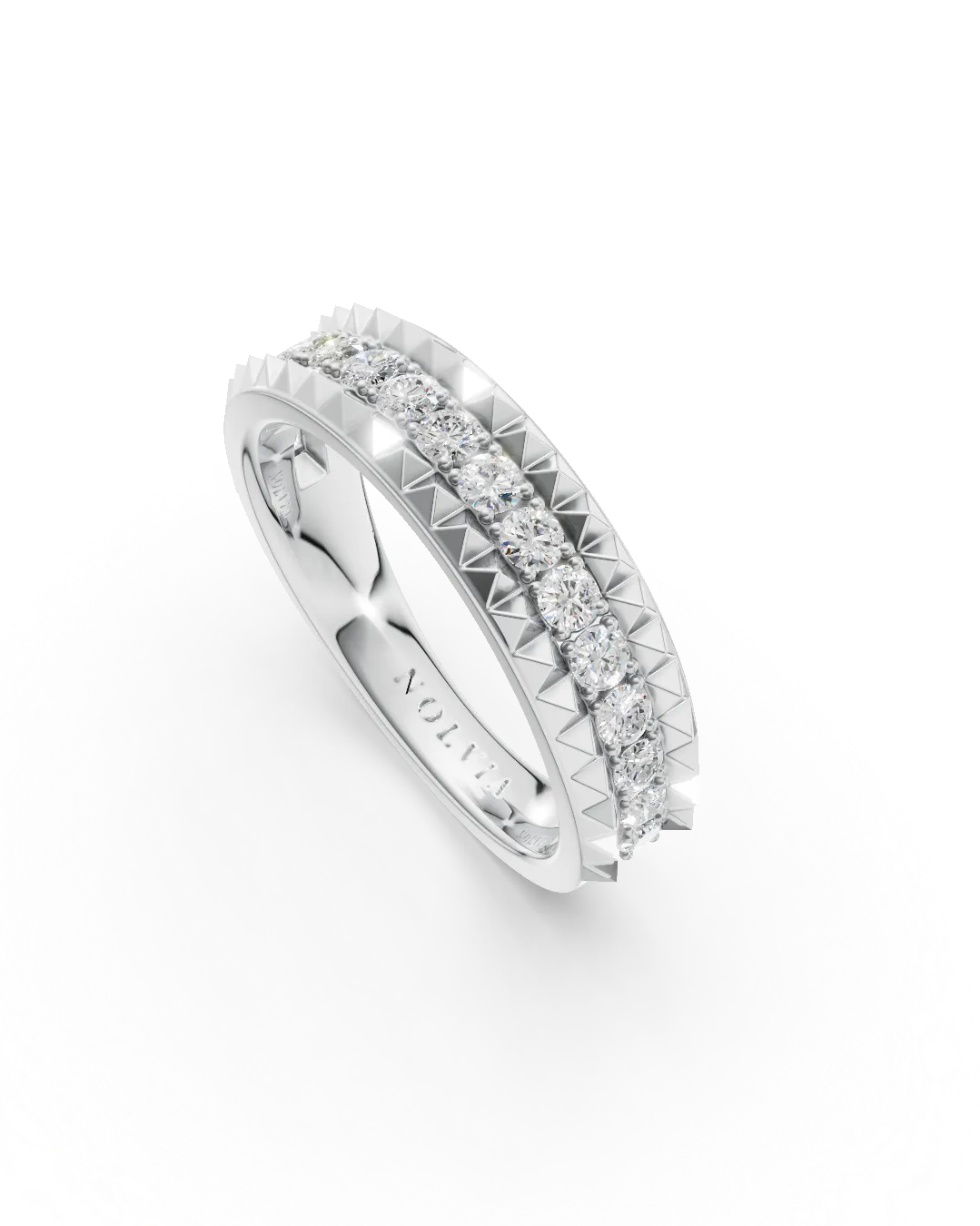 柔らかな曲線が描くシルエットと、存在感を放つ19石の光の粒が織りなすシンチレーションが、美しいデザインです。