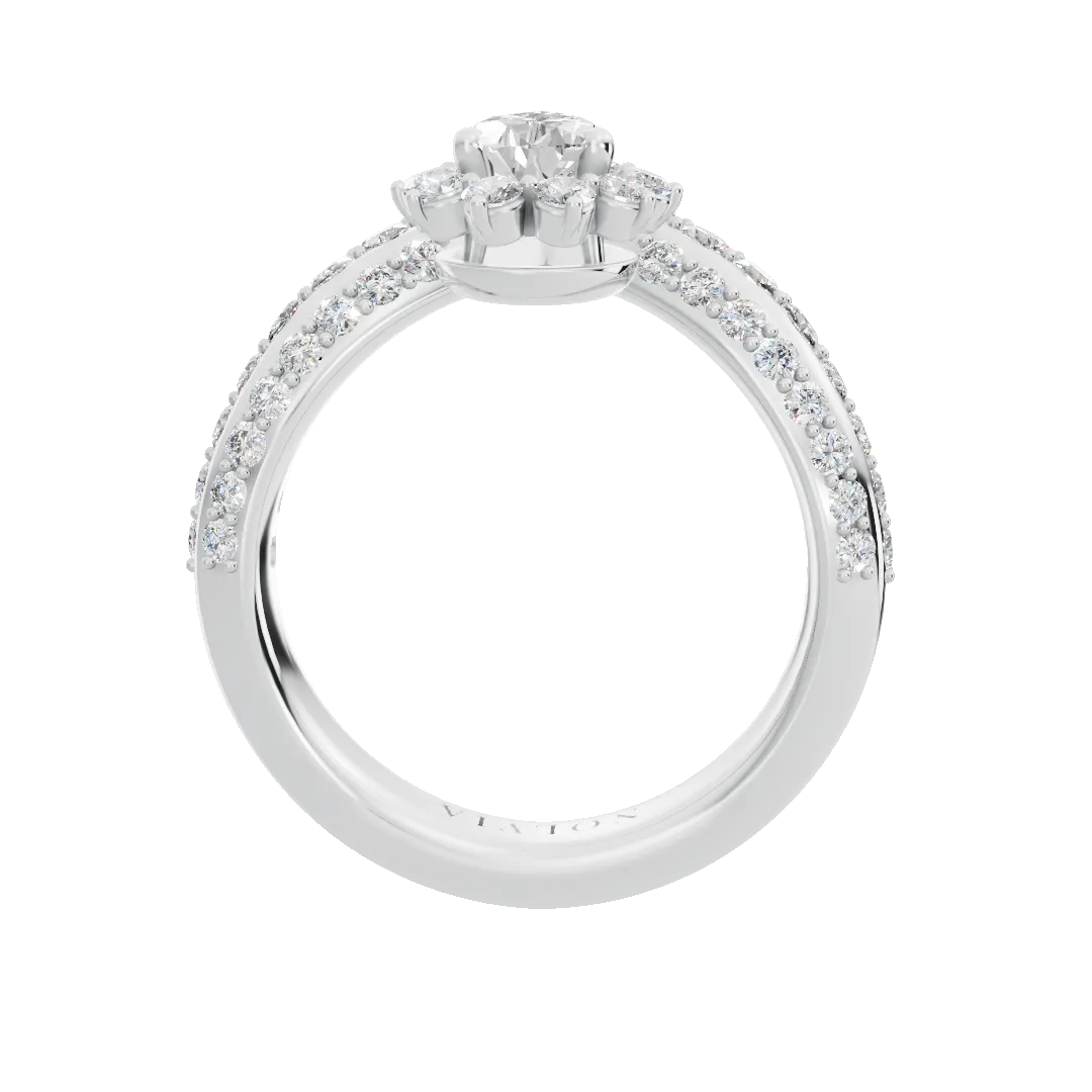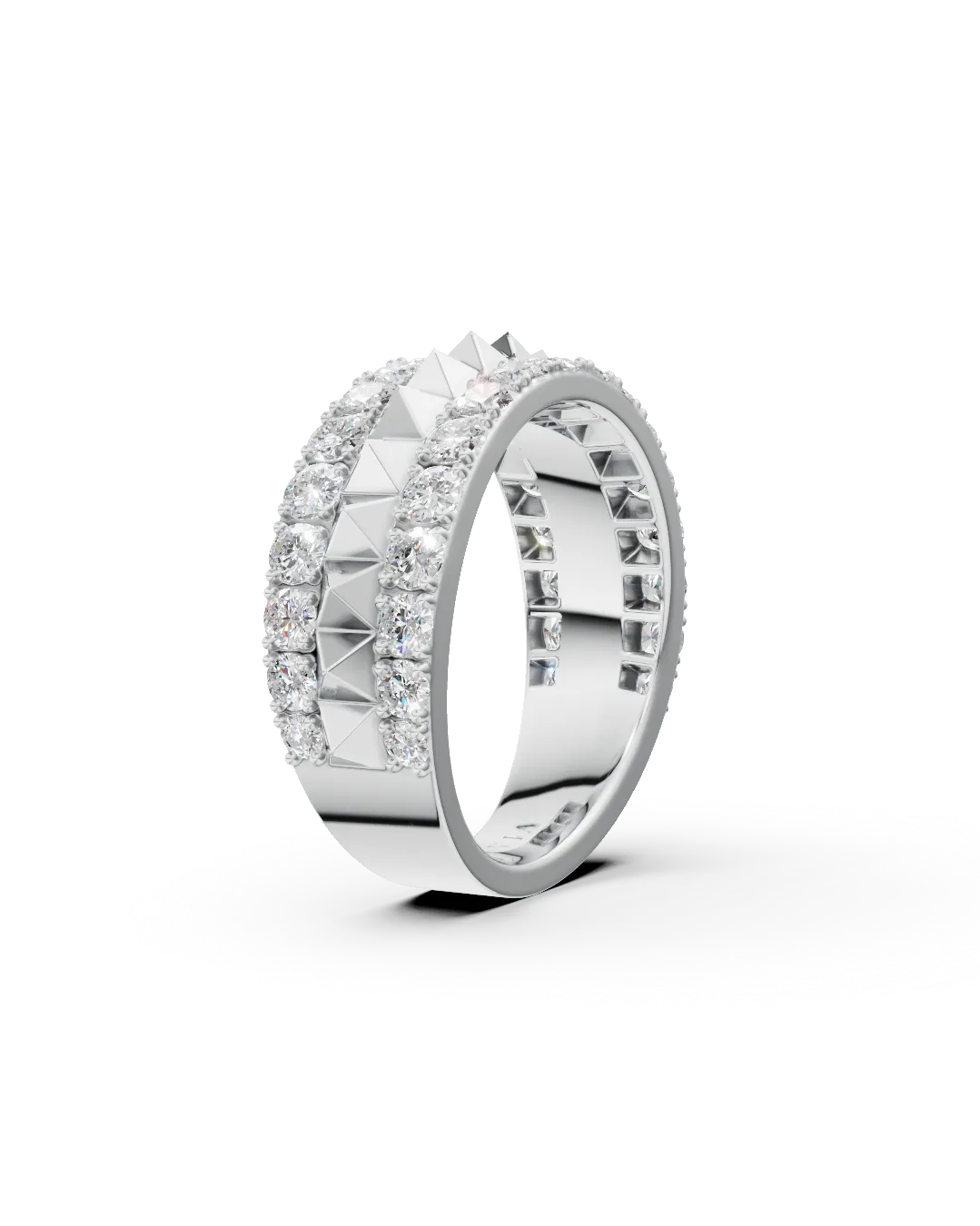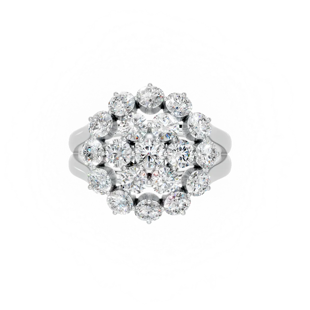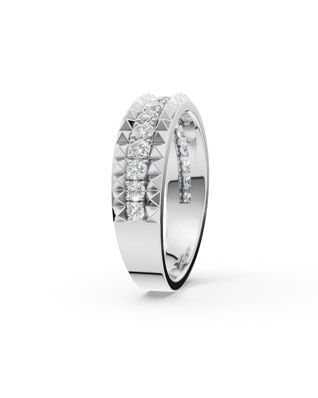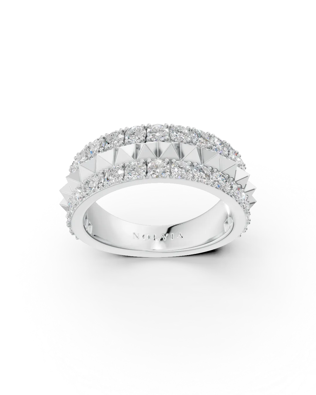 柔らかな曲線が描くシルエットと、存在感を放つ19石の光の粒が織りなすシンチレーションが、美しいデザインです。
