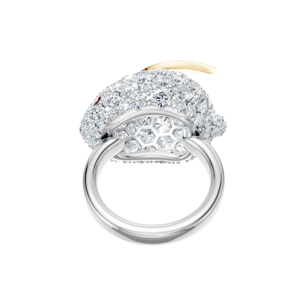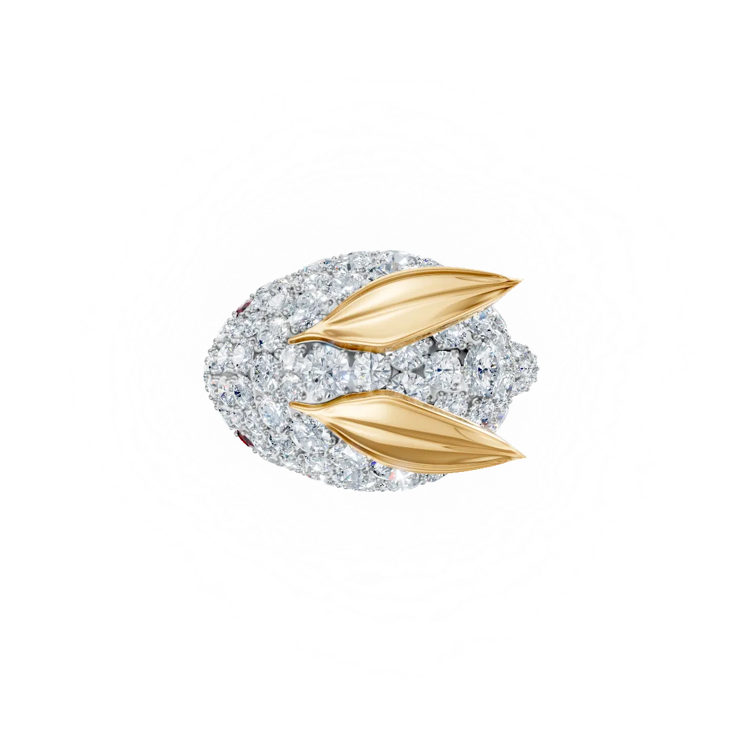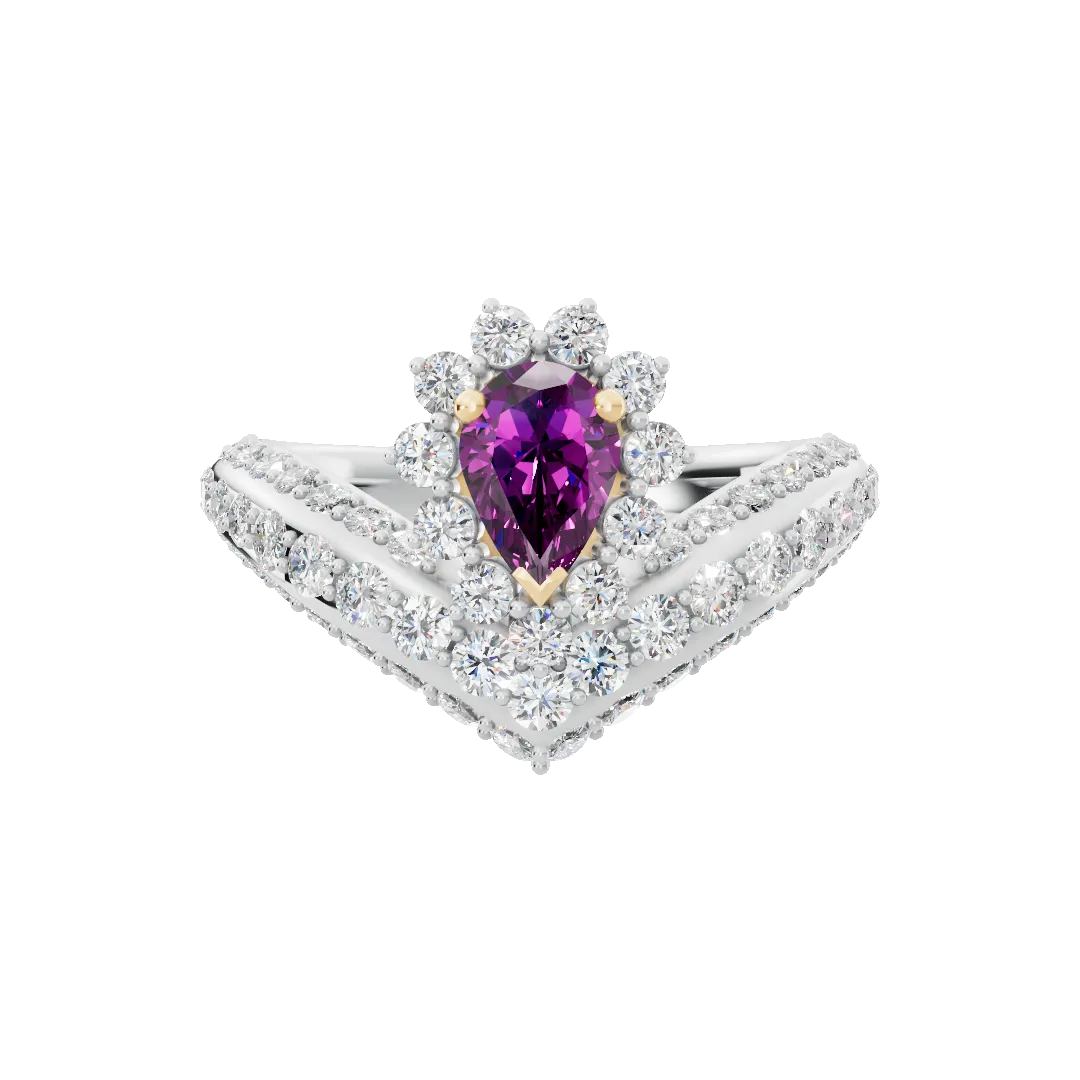 ころんと丸みを帯びたシルエットの中に地金のシャープなラインが引き立つ美しいV字リング。
